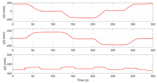 The last stage corresponds to the recollection of the measurements of the MoCap system by means of an application in Simulink, which is graphical programming IDE based on Matlab. Hence, the measurements are used to generate graphs of the position and orientation of each frame of the robotic manipulator, and a 3D graph of the absolute position of its end-effector. These graphs are displayed on a 50-inch TV monitor, which plays a fundamental role during the instructional design process based on the EEMCF. The first unit test of the robotic arm in the MoCap laboratory can be found at https://youtu.be/dKEN0pFRg0E (accessed on 10 August 2023).
