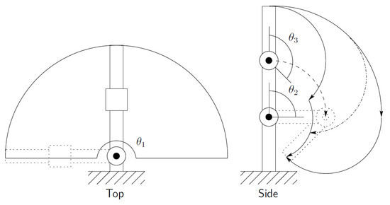 It is essential to mention that the workspace is constrained by the manipulator’s geometry and the mechanical constraints on the joints. It is composed of the reachable and the dexterous workspaces. The former corresponds to the set of coordinates that can be reached by the manipulator, and the latter is the subset of the reachable workspace where the end-effector can have an arbitrary orientation [28].