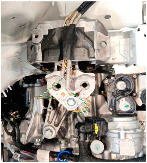 The instrumented part was located over the gearbox mounting support bracket as shown in Figure 4.