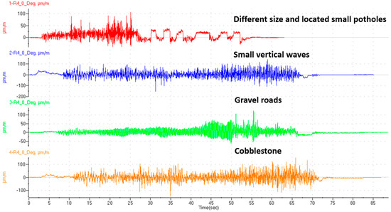 When the data acquisition was completed, each sensor strain level was analyzed as presented in Figure 5.