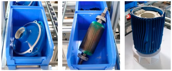 This study focuses on the assembly of the pump components characterized by high weight and size, i.e., pump crankcase, rotor and seal housing disc. The remaining components are small metal parts, and their assembly is not relevant for the purposes of this study. Specifically, the reference assembly tasks consist of placing the rotor in the pump crankcase and positioning the seal housing disc on it. Figure 5 shows the crankcase, the rotor and the seal housing disc of the multistage centrifugal electric pump.