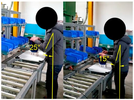 The OCRA indices for both the right and the left arm reveal acceptable exposure to the risk of repetitive movements, i.e., the threshold limit value for the presence of high risk is 2.1. In Configuration #2, the assembly process was performed at the A3S equipped with Microsoft KinectTM. In such a configuration, the real-time control program sets the main roller conveyor height and the position of the two modules according to the operator’s anthropometric measurements. A second ergonomic risk assessment was performed. The results are in Section 5.