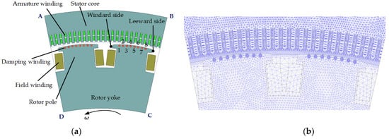 - Karmaker, H.; Mi, C. Improving the starting performance of large salient-pole synchronous machines. IEEE Trans. Magn. 2004, 40, 1920–1928. [Google Scholar] [CrossRef]