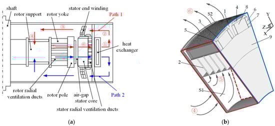 - Zhang, S.; Li, W.; Li, J.; Wang, L.; Zhang, X. Research on flow rule and thermal dissipation between the rotor poles of a fully air-cooled hydrogenerator. IEEE Trans. Ind. Electron. 2015, 62, 3430–3437. [Google Scholar]
