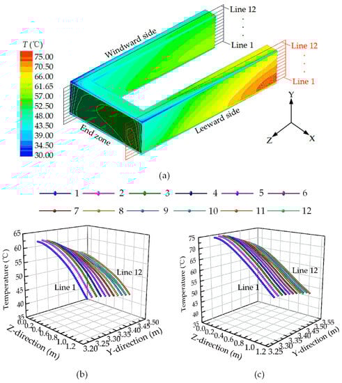 - Considering the symmetry in an axial direction, the axially central section (in blue as shown in Figure 8b) is considered to be an adiabatic surface;