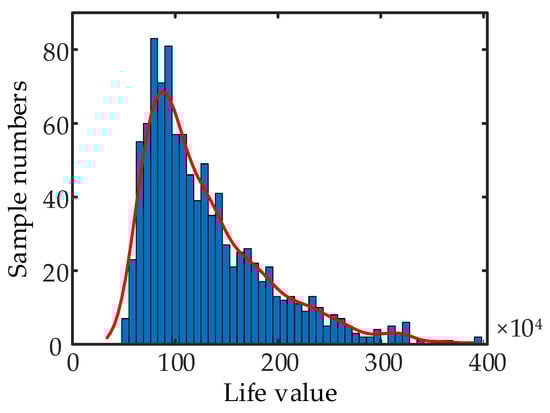 The lifetime of samples can be obtained by the method established in Section 3.3, and the distribution characteristics of lifetime can be obtained by statistical methods. In this section, the lifetime distribution of data set 1 was calculated.