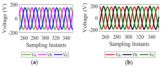 Enlarged view of real-time acquired voltage data. (a) Healthy rotor, (b) Asymmetry rotor.