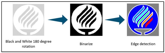 The images for the test had to be digital drawings with high contrast between the foreground and the background, although sometimes constraining the algorithm was good enough for our purposes. In Figure 25, the emblem of our university was used for the first test of the image processing module. The robot was able to draw free hands on a plain surface. It is worth highlighting that the system can draw circles and other curved lines.