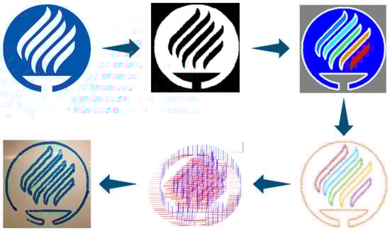 Once it was validated that the module of Section 2.5 worked with a complex image, the system was tested to observe its performance with a trajectory that contained a much bigger number of waypoints. The process shown in Figure 25 was done with a more complex image to evaluate the capabilities of the module. For this test, the emblem and the name of the university were used, and the result is shown in Figure 26. The drawing has 1606 waypoints.