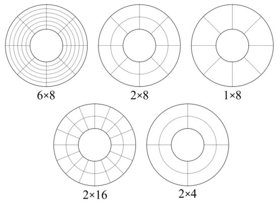 The friction surface area was segmented both radially and circumferentially, resulting in five different segmentation patterns explored in this study (illustrated in Figure 10). The work was calculated for each of these five patterns.