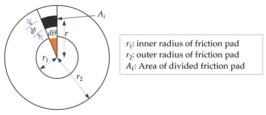 Figure 11 shows the geometric parameters of the friction pad. r1 = 30 mm and r2 = 75 mm according to the size of the friction pad, as shown in Figure 4.