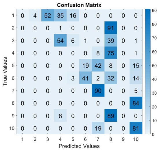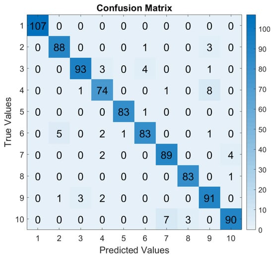 is equal to one if the true class label for sample i is k, or zero otherwise. is the predicted probability of sample i belonging to class k according to the MLP’s output. The goal during training is to minimize this loss by adjusting the weights and biases of the MLP using optimization algorithms. In the context of vibrations, the MLP classifies different time series based on the input features to a specific vibration pattern according to the MLP’s output, by minimizing the loss in (24).