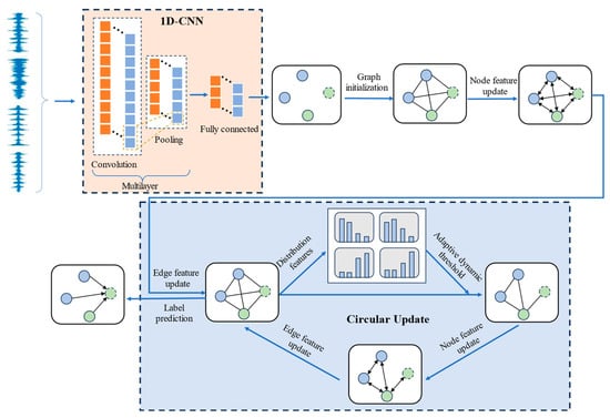 In recent years, graph neural networks (GNNs) have begun to be employed in the field of few-shot fault diagnosis. Wang et al. [22] propose a dual graph neural network to address fault diagnosis with limited data. Yang et al. [23] propose a graph contrastive learning framework for few-shot machine fault diagnosis. GNNs are a type of deep learning model specifically designed for processing graph data. Graph data consist of nodes and edges, where nodes represent samples and edges signify relationships between nodes. Traditional bearing fault diagnosis methods primarily extract information from the amplitude of bearing vibration signals, overlooking the rich relational information among samples. Transforming vibration signals into graph data allows for modeling these relational details. The application of GNNs enables the deep exploration of relationships between nodes, aggregating this information to learn expressive node representations. Given that few-shot learning involves leveraging relationships between support set samples and query set samples for classification, GNNs exhibit significant potential in addressing few-shot classification challenges.