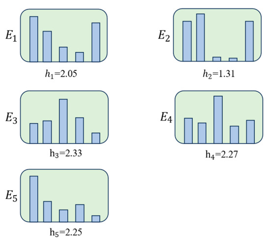 where represents the uncertainty of node i. Let , and normalize it to obtain , as shown below: