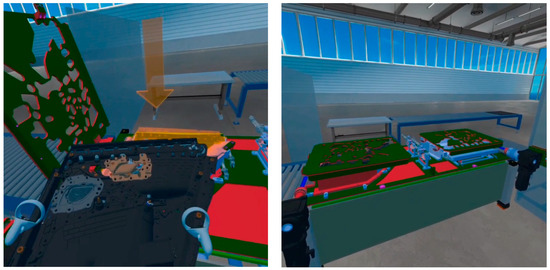 Virtual reality is computer-generated simulation of an immersive and interactive environment that can be experienced by individuals using specialized hardware, such as VR headsets or goggles. In a virtual reality environment, users are surrounded by three-dimensional (3D) visuals. Virtual reality environments can help increase user creativity levels [32]. The use of virtual reality (VR) to create instructions and assembly procedures has already been addressed in several papers [33,34]. Results have shown that there is a lack of evaluation methods applicable to industrial practice and it is difficult to obtain feedback, although there are methods aimed at learning effects [35]. Furthermore, it was found that virtual reality does not help to acquire motor skills [36] and is more suitable for workflow training [37]. The simplified representation of work steps as well as the lack of multimodal stimuli during VR training negatively affect learning [38]. Thus, it is important to maintain a high level of immersion [39] and training is de-tuned from distracting errors by the trainee [40]. In an experiment comparing paper tutorials, video tutorials, augmented reality, and virtual reality under constrained conditions, it was found that augmented reality led to the most satisfactory task performance [41].