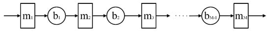 The traditional serial production system has machines that are connected in a serial way, where a material storage device (or buffer) exists between the two machines to convey products from one machine to another. A traditional serial production line, with a rectangle representing M machines and a circle representing M-1 buffers, is shown in Figure 1. Hunger and congestion often occur on this serial production line [].