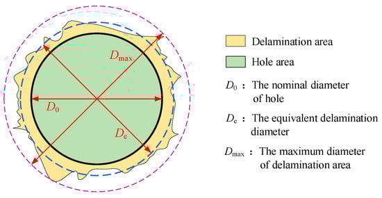The forms of damage in CFRP drilling are various. Qualitatively reflecting the influence of each variable on damage is challenging. Therefore, the quantitative description of damage severity has always been a focal point among scholars [17]. In this regard, for decades, scholars have proposed various quantitative evaluation methods for different types of damage.