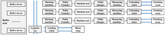 where and denote the vector composed of EL indexes of the logistics subsystem and the vector composed of weights of these indexes; and are the vectors composed of EL indexes of the machining-line subsystem and the vector composed of weights of these indexes; and are the vector composed of SSL indexes and the vector composed of their weights, respectively. The detailed calculation processes of the reliability indexes and index weights have been detailed in our reference report [].