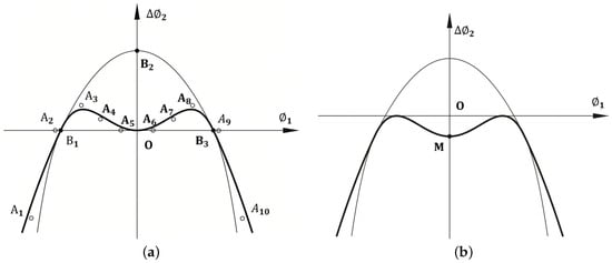 Step 2: Combining two intersections of the above fourth-order polynomial MC with the abscissa, which are symmetrical about the coordinate origin and another point on the ordinate, i.e., , denoted by as in Figure 1b, the second-order polynomial MC can be represented as