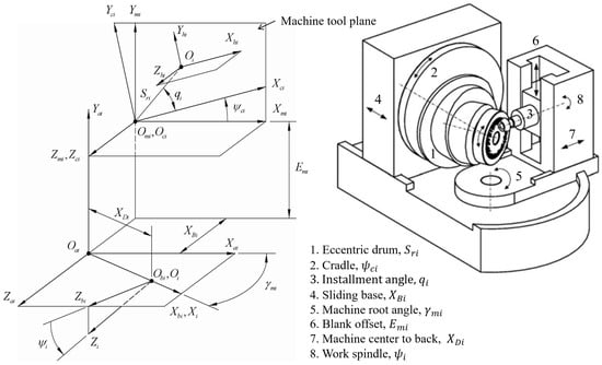 3.1. Coordinate Systems of the Face-Milling Machine Tool