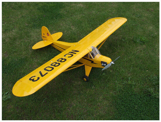 - Thomas, P.R.; Richardson, T.S.; Cooke, A.K. Estimation of Stability and Control Derivatives for a Piper Cub J-3 Remotely Piloted Vehicle. In Proceedings of the AIAA Modeling and Simulation Technologies Conference, Minneapolis, MN, USA, 13–16 August 2012; pp. 1–26. [Google Scholar]