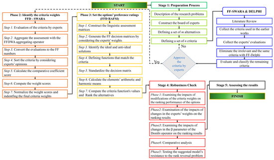 The remainder is structured as follows. In Section 2, a detailed literature survey was carried out. Section 3 presents the suggested FF approach and its execution phases. In Section 4, the suggested tool was implemented to solve the 3DP selection problem in the automotive industry (AI); a comprehensive validation test consisting of three stages was executed to test the robustness and practicability of the suggested FF implementation. In Section 5, the results are assessed and examined. In Section 6, the study is finalized. Moreover, the constraints of the current study and suggestions for future research are pointed out in the final section.