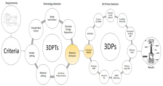 Finally, most 3DPs evaluated by authors in the previous studies are improper for mass production because their production speed, capacity, and maximum build size are insufficient to respond to the requirements of some industries such as textile, automotive, and machine manufacturing. Thus, these previous studies cannot meet the requirements of these industries concerning the transformation of the production system, as the examined 3DPs by the authors carrying out these studies cannot produce thousands of products with equal quality and standards.