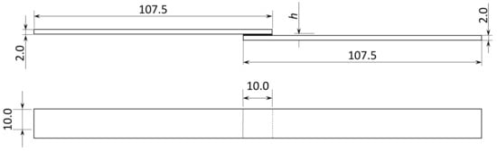 Regarding the geometry of the single lap joint, Figure 8 shows the geometry and dimensions of the joints. In the image, the variable h represents the adhesive thickness of the PSA that was used for each test.