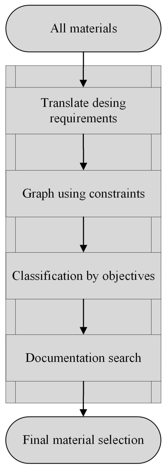 Finally, this paper is organized as follows: Section 2 presents the quality function deployment (QFD) methodology. In Section 3, the theory of inventive problem-solving methodology is presented. Section 4 covers Ashby’s materials selection methodology. Section 5 introduces the systematic approach methodology. In Section 6, a comparison of the aforementioned methodologies is presented. Section 7 describes the material-focused design methodology. Section 8 contains the case study. Section 9 discusses the findings, and Section 10 presents the conclusions.