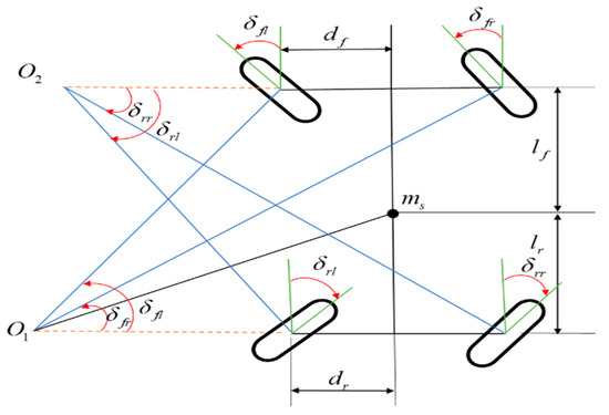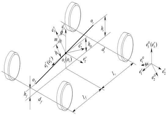 where, is the vertical distance between the roll center of the front axis and the ground, is the vertical distance between the roll center of the rear axis and the ground, and is the vertical distance between the origin and the ground.