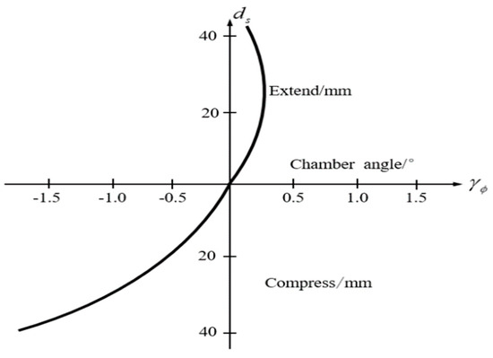 As seen in Figure 4, when the motion travel of the suspension is small, i.e., the roll angle is not large, the wheel angle and the roll angle can be considered to be nearly linear, so the (49) can be approximated as