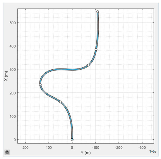 Simulation conditions are shown in Figure 16. The sample curve is used to draw a double-shifted line vehicle driving trajectory; the initial speed of the vehicle is 60 km/h, and the speed is maintained while traveling.