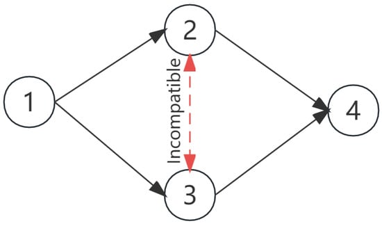 There are robots in the FJSP-DT workshop and stations. In the workshop, a total of jobs need to be processed and job has operations. The relationships between two operations may be sequential, parallel, or conflicted. The processing time of the operation depends on the robot . There exists a subset of robots to satisfy the processing requirements of the operation . Each robot covers a subset of stations. Multiple robots can share the same station. The transportation time from the station to the station for the next operation needs to be considered. The notations formulating the problem are given in Table 2.