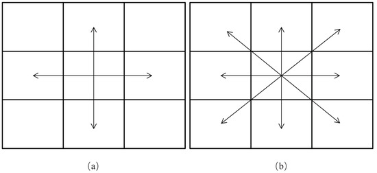 Different grid expansion methods. (a) Four-connected method. (b) Eight-connected method.