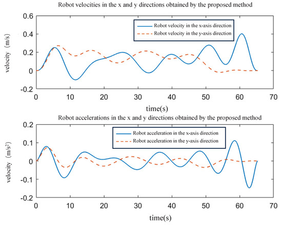 Robot velocity and acceleration components in the x and y directions using the proposed OTPWR method.