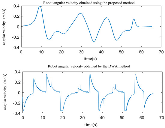 Comparison of angular velocity between the proposed OTPWR method and the DWA method.