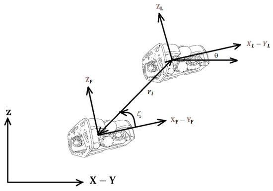 There are various collaboration strategies between robots, with the leader–follower system being the focus. The theory of follower leadership, explored in the study [19], has been subject to adaptations, adjustments, and modifications in terms of its adaptation to application in underwater vehicles, guaranteeing that it does not interfere with the previously defined variables. To express this challenge more effectively, the following assumptions are introduced: