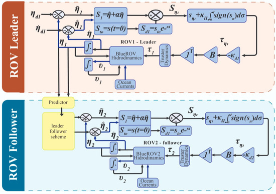 - ROV1 is the leader and ROV2 is the follower.