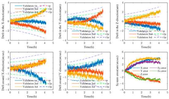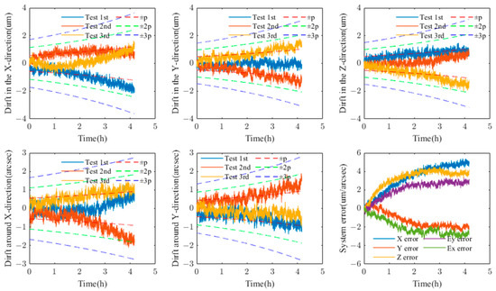where P0 represents the short-term repeatability, ei denotes the drifted error observed independently in the i-th group within a short period of time under the same operating conditions. After conducting a series of independent drift tests, the systematic drift can be distinguished as follows: