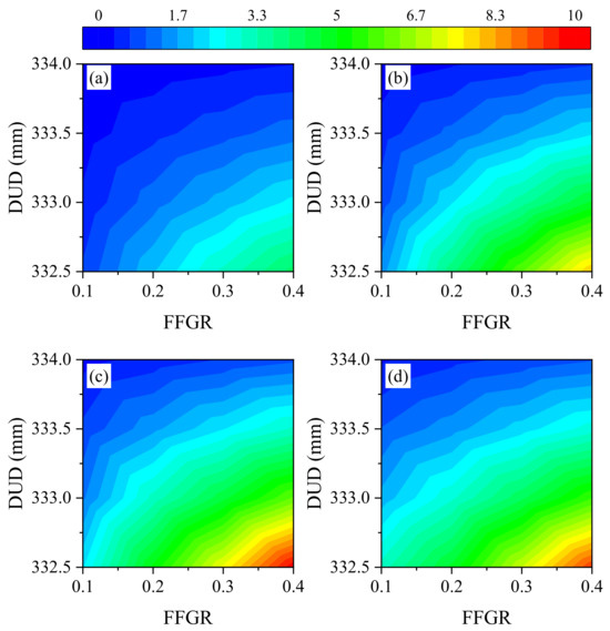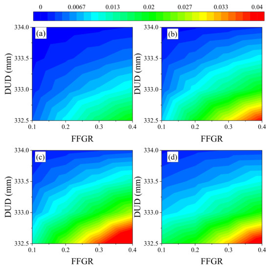 DUD had the greatest influence on the experimental indexes compared to the other two factors, and FFGR’s influence was greater than that of AUD, except for MRDP and ARDP.