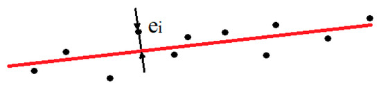 We will base our approach on the least squares criterion, which involves minimizing the sum of squared residuals , where represents the orthogonal distance between the measured points and the substitute feature, as shown in Figure 5.
