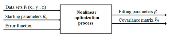 Based on the probed points and the objective function (error function, detailed in Section 2.2), once the initial vector is determined, we can proceed to surface fitting. A nonlinear regression process is then applied, allowing us to obtain both the fitting parameters and the associated covariance matrix as shown in Figure 6.