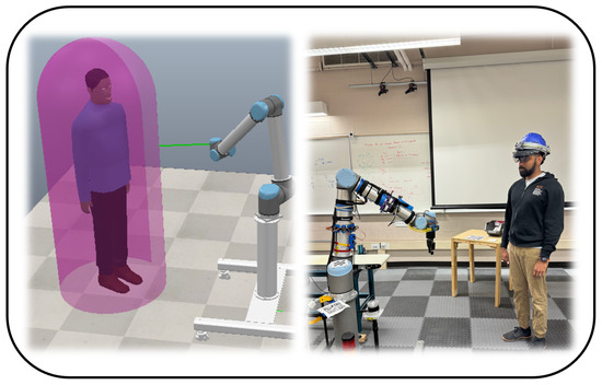 - Subramanian, K.; Arora, S.; Adamides, O.; Sahin, F. Using Mixed Reality for Safe Physical Human–Robot Interaction. In Proceedings of the 2024 IEEE Conference on Telepresence, California Institute of Technology, Pasadena, CA, USA, 16–17 November 2024. Accepted for Presentation. [Google Scholar] [CrossRef]