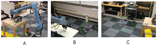 The field of Human–Robot Interaction (HRI) has been rapidly evolving, with recent years seeing a significant focus on integrating Augmented Reality (AR). HRI, which combines the efforts of humans and robots, offers considerable flexibility and benefits, such as reduced production time [1,2]. Although HRI is used in various industries, such as medical and automotive, it is predominantly applied in collaborative industrial settings, such as assembly lines and manufacturing [3].