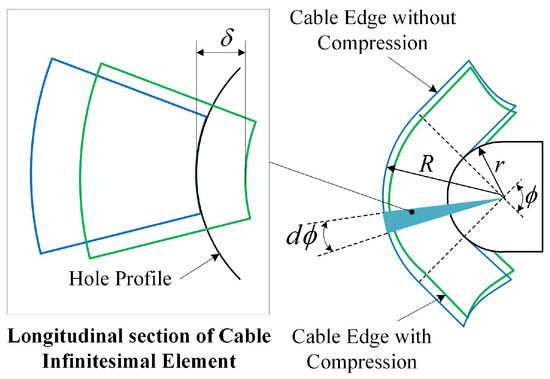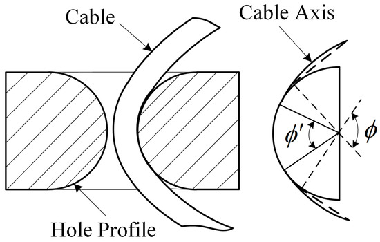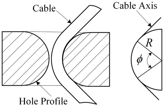 According to Equations (4) and (5), the contact area between the cable element and the hole contour can be calculated as follows: