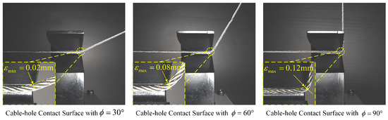It can be seen from Equation (7) that the contact area between the cable micro-element and the hole is proportional to the pressure. The contact area increases with the increase in pressure. Besides, when the contact area increases, the friction resistance of the cable increases significantly.