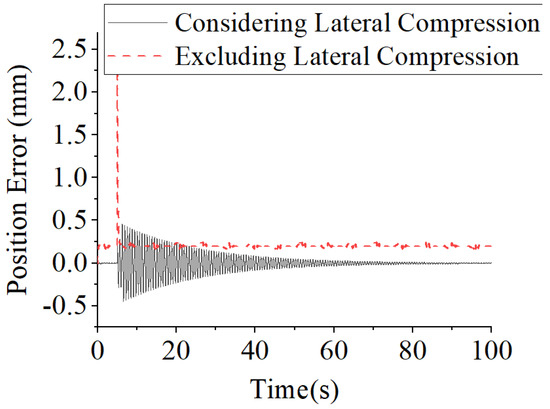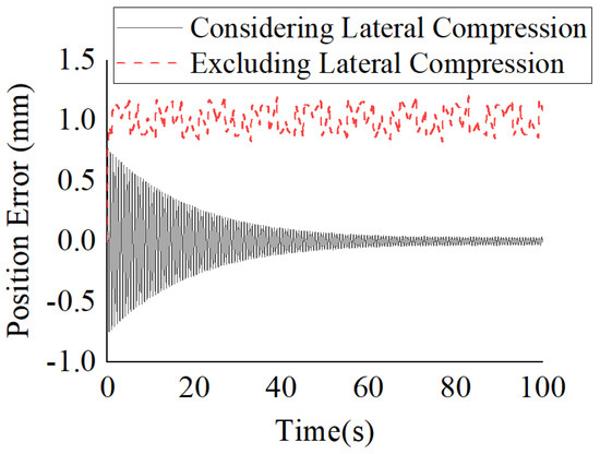 It can be seen from the above experimental results that the compression of the cable increases with the increase in the angle between the rope segments of the two sides, which is caused by the pressure exerted by the rope on the hole increasing. As the diameter of the cable increases, the radial stiffness of the cable increases, so the change rate of the cable diameter decreases under pressure. The Coulomb friction coefficient is only related to the material of the cable, so of each material is basically unchanged. As the diameter of the cable increases, the cable-hole contact area increases significantly after compression, so the viscosity coefficient K increases obviously with the increase in the diameter. Under low speed conditions, the velocity index is not obvious, and the viscosity coefficient of each material is basically unchanged. Although the material properties and cable-hole contact parameters of the three kinds of cables are quite different, the control error can be kept in low level under the model reference adaptive control considering the lateral extrusion of cables, which proves the effectiveness of the cable-hole modeling and cable tension compensation method described in this paper.