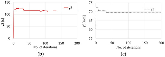 Process of searching for object functions via the GA. (a) y1; (b) y2; (c)y3.