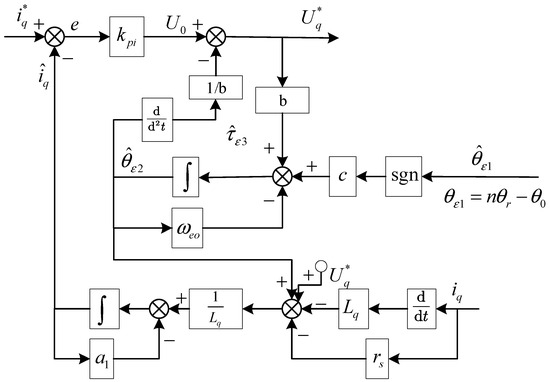 After the ADRC algorithm is introduced to obtain the estimated q-axis current, the LSEF controller is described by Equation (14)
