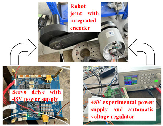 The fundamental reason for the waveform of in all figures is caused by the elastic deformation of the gear mesh in the harmonic reducer. Each time the gears mesh, an approximate triangular wave of accuracy change is generated. Its period depends on how many gears are engaged in the entire circle of the harmonic reducer. If the transmission ratio of the harmonic reducer changes, the period of will also change accordingly. Due to disturbances in the robot joint module, the amplitude of will increase and the accuracy will deteriorate. The purpose of this study is to reduce disturbances and minimize changes in amplitude.